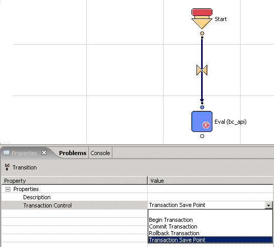 To set the node to transactional, select the Transactional field in the Property view, then select true.