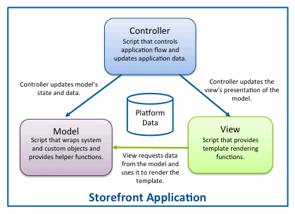 SiteGenesis uses the Model-View-Controller (MVC) development model to isolate changes and reuse functionality in the application.