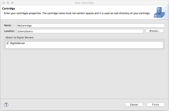 The Cartridge dialog box opens. - Enter the name of your new cartridge (for example, MyCartridge).