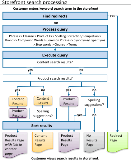 Keyword searching is how most customers use your storefront to find the products they are interested in buying. By specifying the searchable product attributes and configuring relationships using search dictionaries, a large and accurate search index is created. When an item is searched for, B2C Commerce runs through a search process, gathers the results, and applies a sorting rule that defines how to display the respective results.